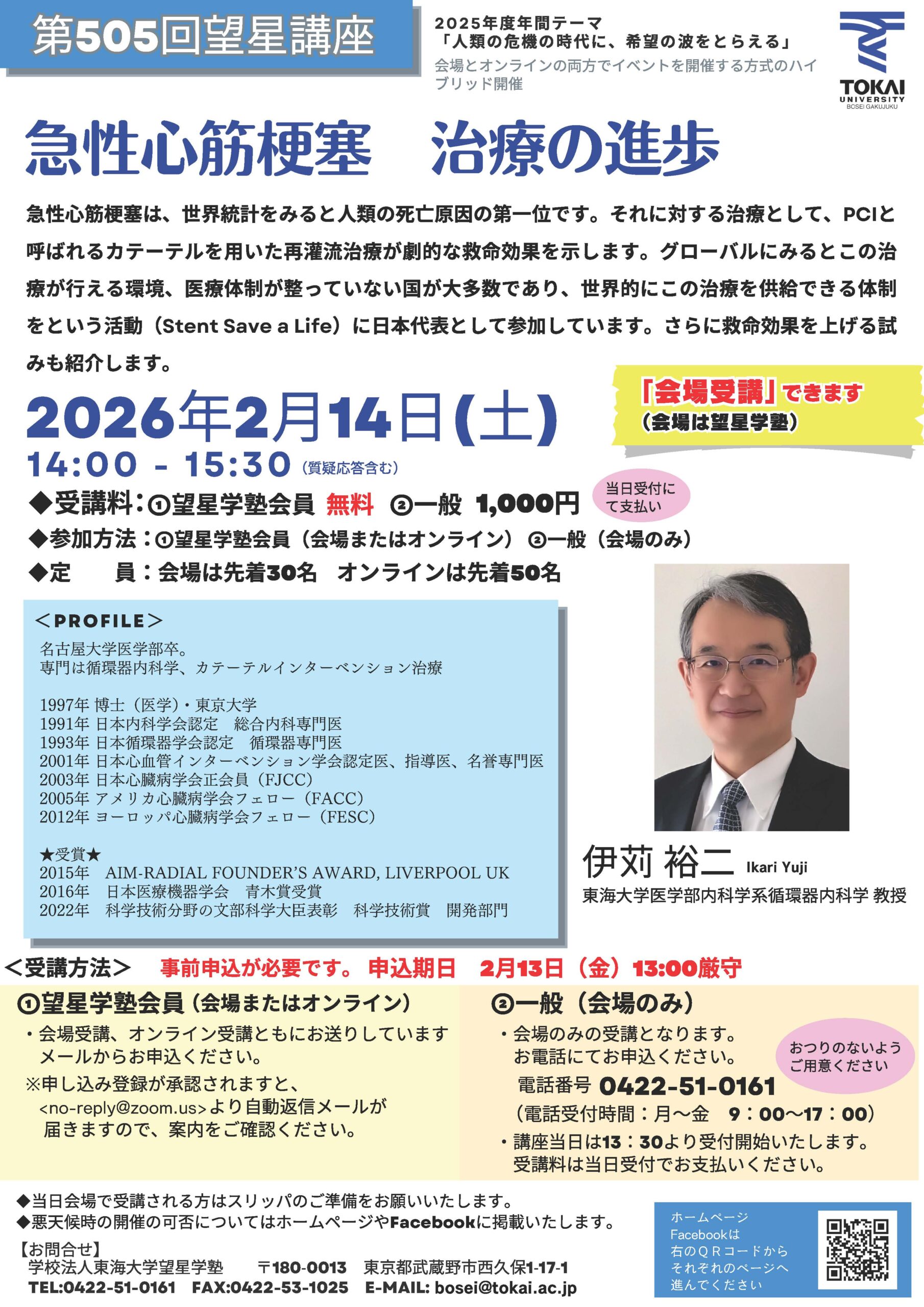 【第505回望星講座】「急性心筋梗塞 治療の進歩」を開催します!